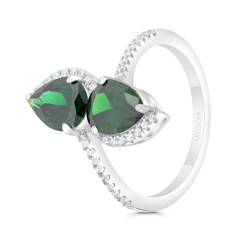 خاتم من الفضة الخالصة عيار 925 مطلي روديوم مرصع زركون زمردي و فص ابيض