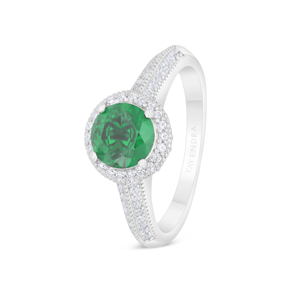 خاتم من الفضة الخالصة عيار 925 مطلي روديوم مرصع زركون زمردي و فص ابيض