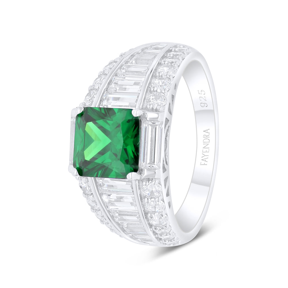 خاتم من الفضة الخالصة عيار 925 مطلي روديوم مرصع زركون زمردي و فص ابيض