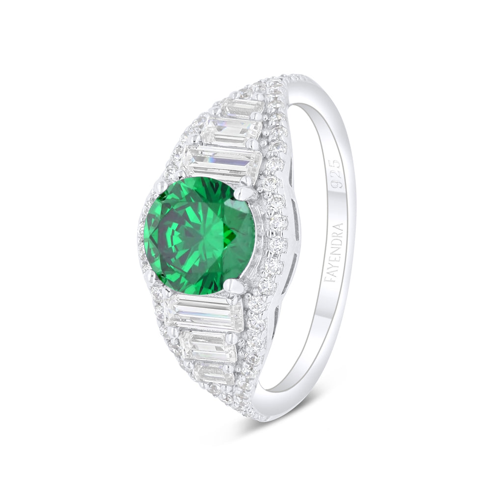 خاتم من الفضة الخالصة عيار 925 مطلي روديوم مرصع زركون زمردي و فص ابيض