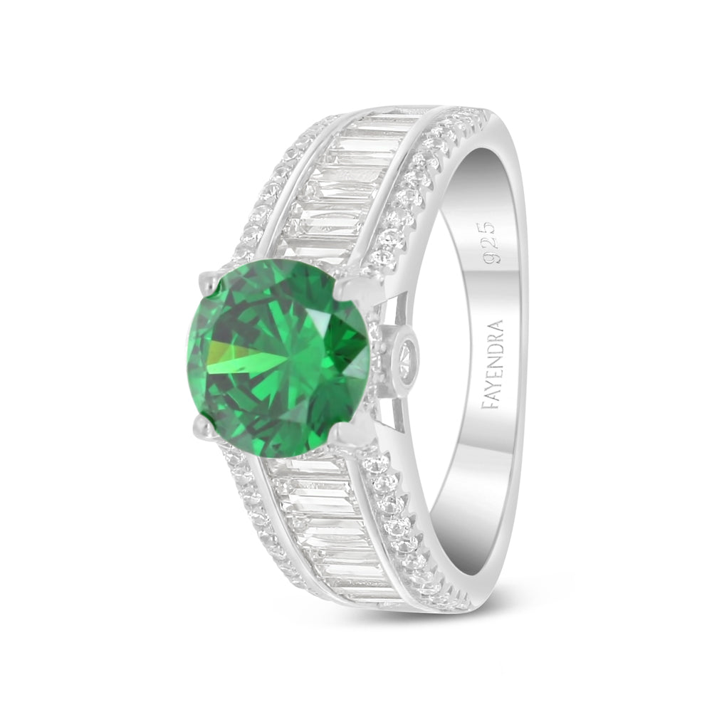 خاتم من الفضة الخالصة عيار 925 مطلي روديوم مرصع زركون زمردي و فص ابيض