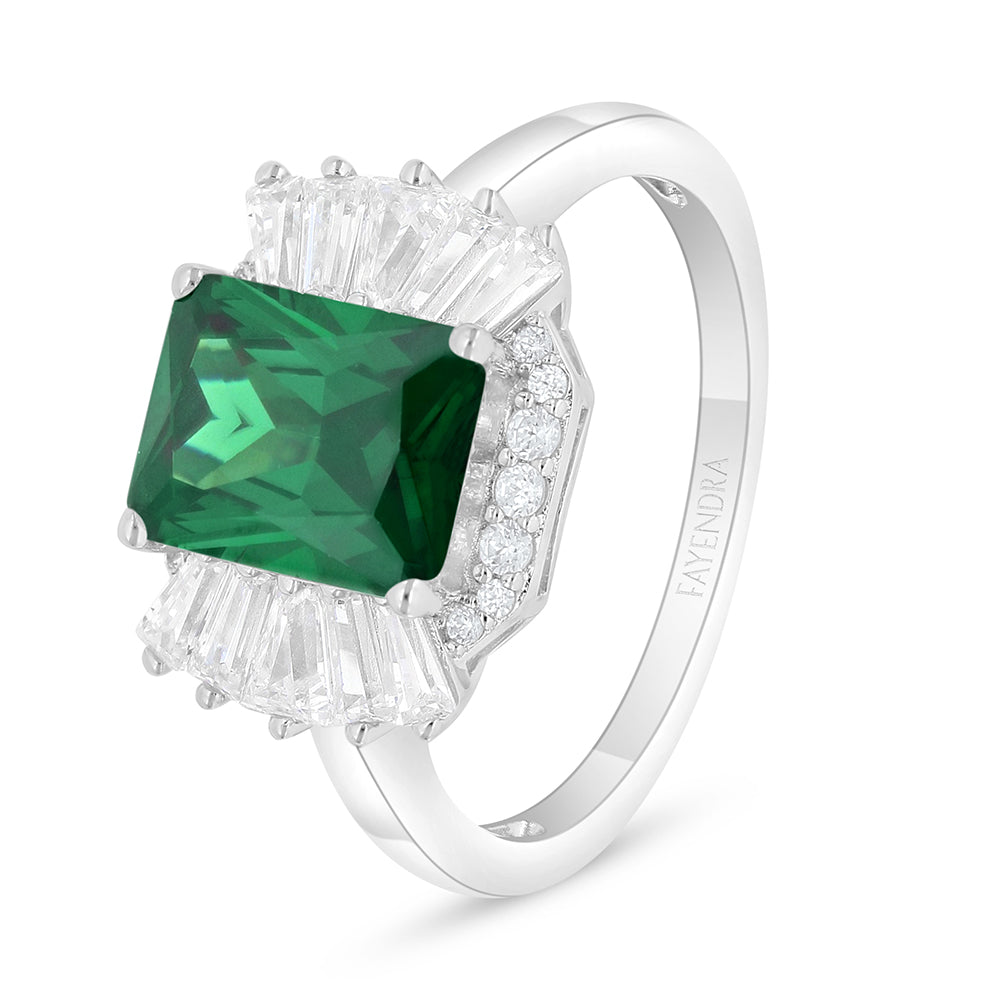 خاتم من الفضة الخالصة عيار 925 مطلي روديوم مرصع زركون زمردي و فص ابيض