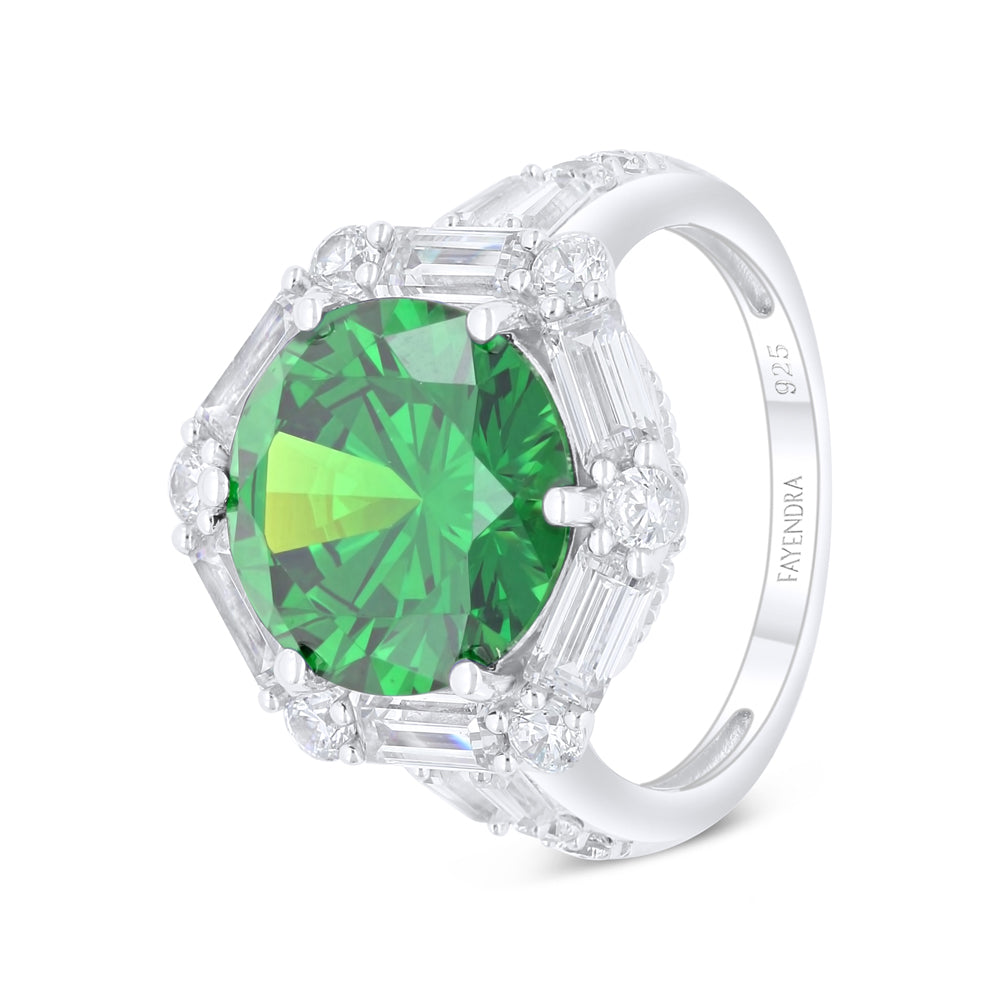 خاتم من الفضة الخالصة عيار 925 مطلي روديوم مرصع زركون زمردي و فص ابيض