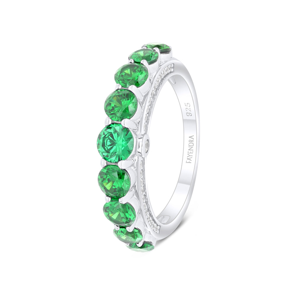 خاتم من الفضة الخالصة عيار 925 مطلي روديوم مرصع زركون زمردي و فص ابيض