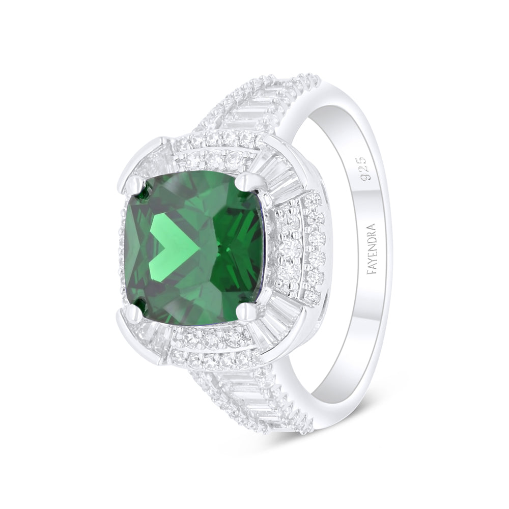 خاتم من الفضة الخالصة عيار 925 مطلي روديوم مرصع زركون زمردي و فص ابيض