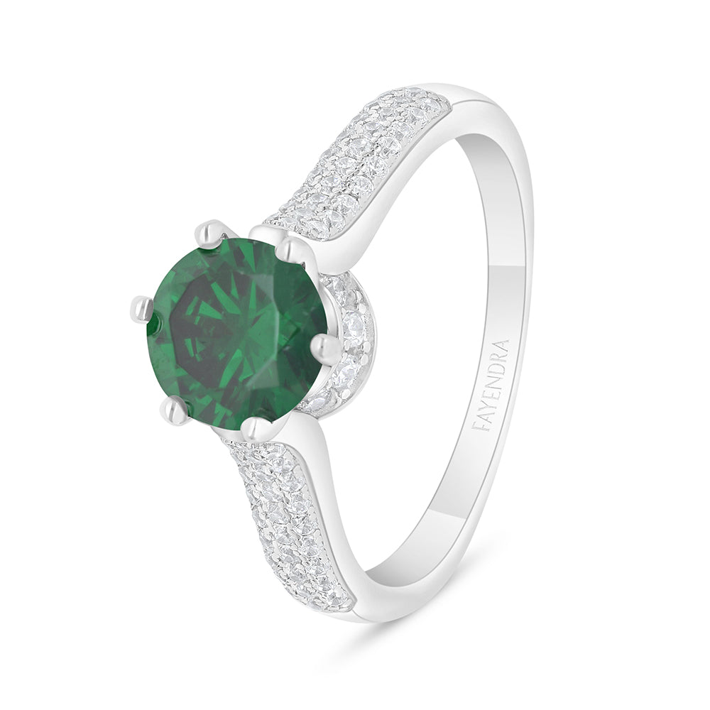 خاتم من الفضة الخالصة عيار 925 مطلي روديوم مرصع زركون زمردي و فص ابيض