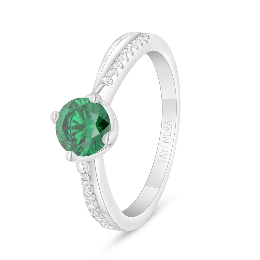 خاتم من الفضة الخالصة عيار 925 مطلي روديوم مرصع زركون زمردي و فص ابيض