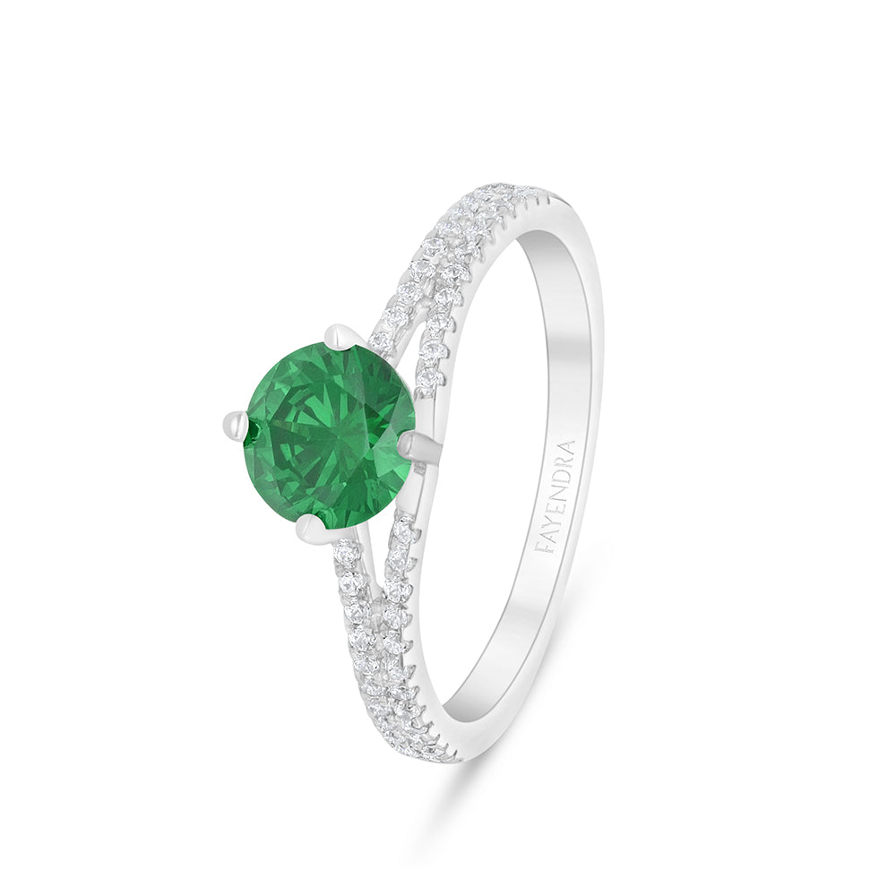 خاتم من الفضة الخالصة عيار 925 مطلي روديوم مرصع زركون زمردي و فص ابيض