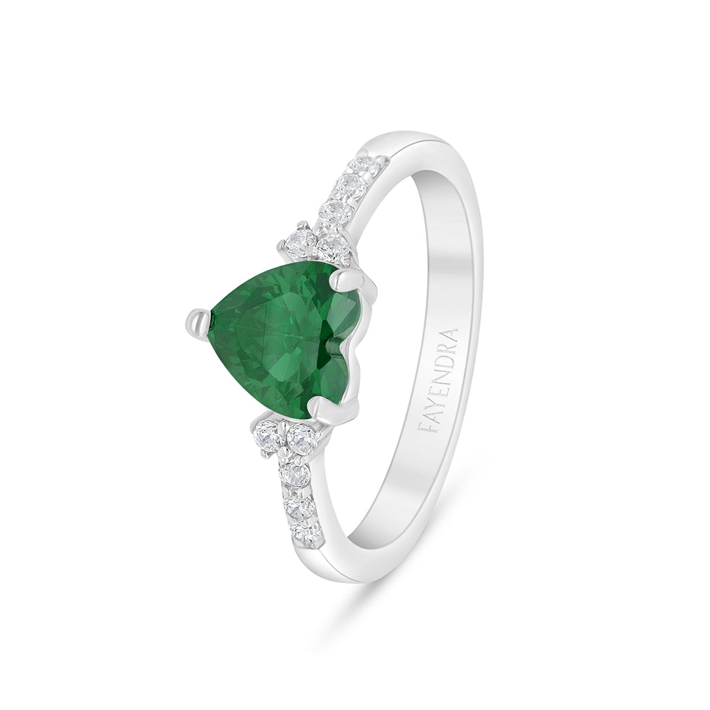 خاتم من الفضة الخالصة عيار 925 مطلي روديوم مرصع زركون زمردي و فص ابيض