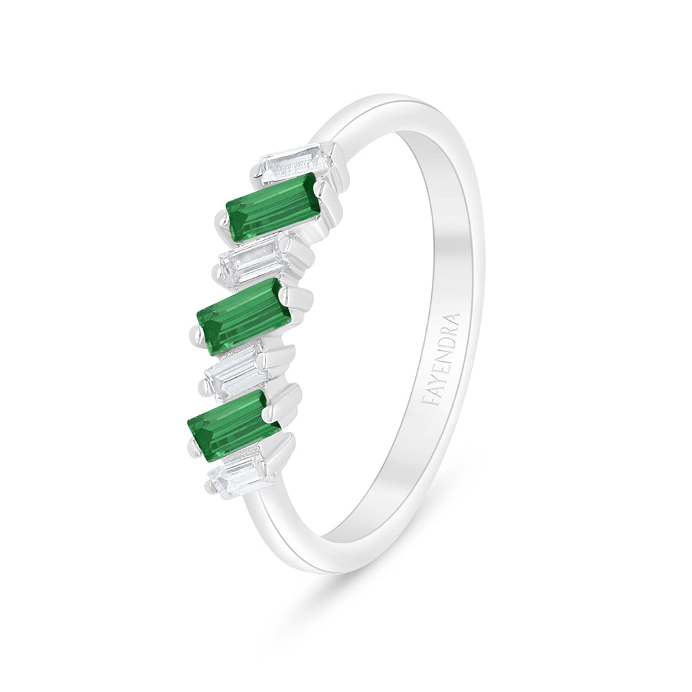خاتم من الفضة الخالصة عيار 925 مطلي روديوم مرصع زركون زمردي و فص ابيض