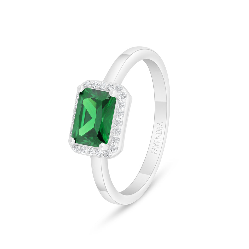 خاتم من الفضة الخالصة عيار 925 مطلي روديوم مرصع زركون زمردي و فص ابيض