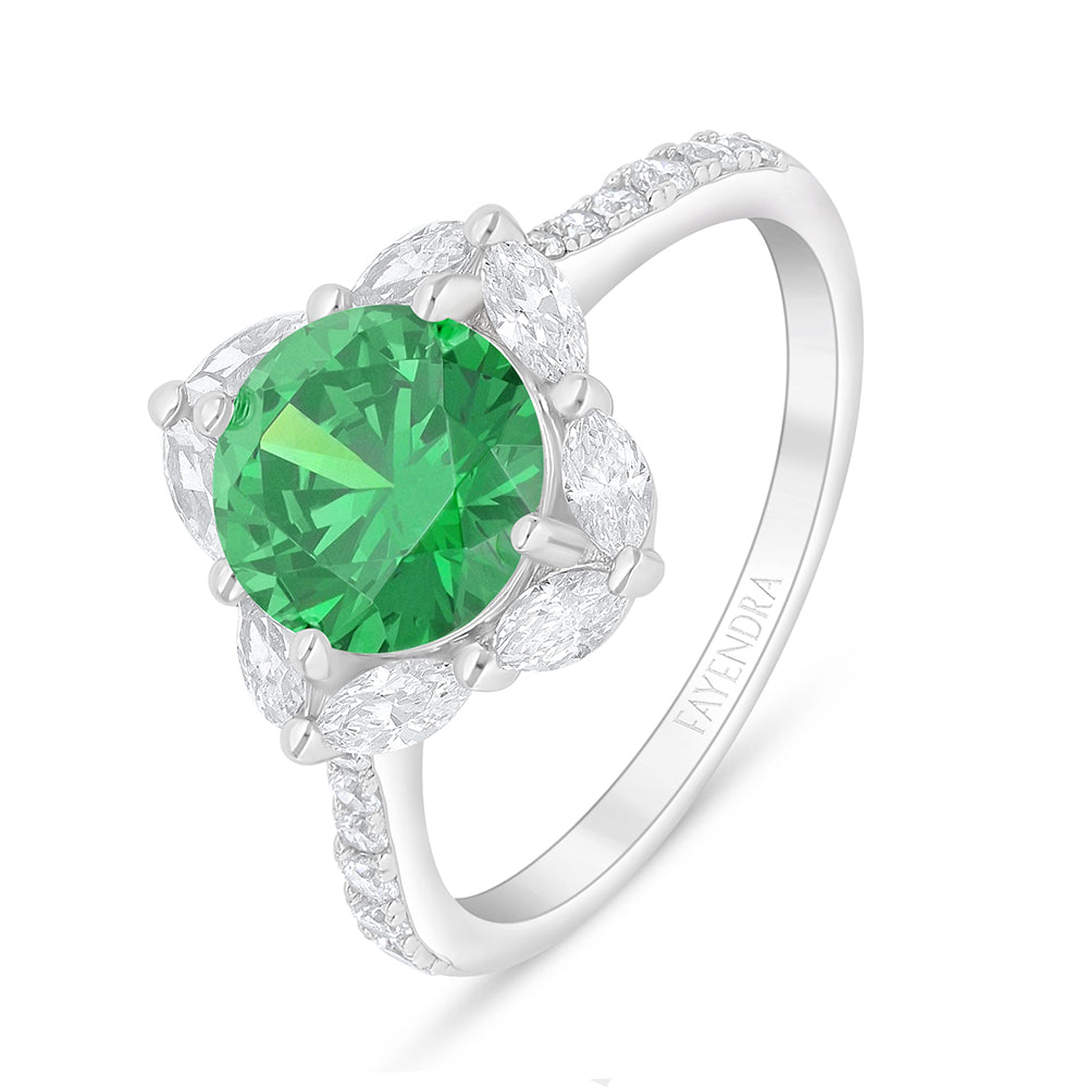 خاتم من الفضة الخالصة عيار 925 مطلي روديوم مرصع زركون زمردي و فص ابيض