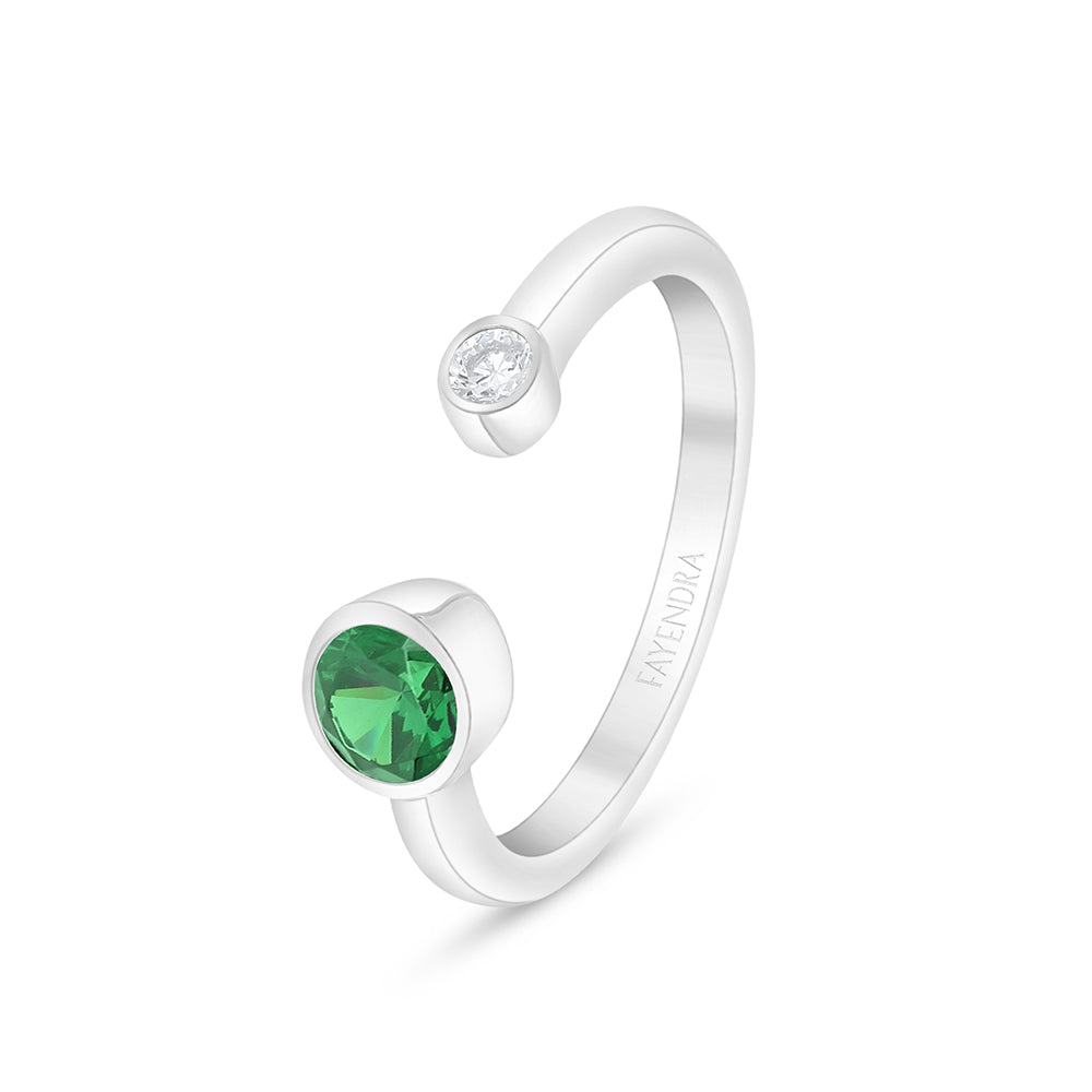 خاتم من الفضة الخالصة عيار 925 مطلي روديوم مرصع زركون زمردي و فص ابيض