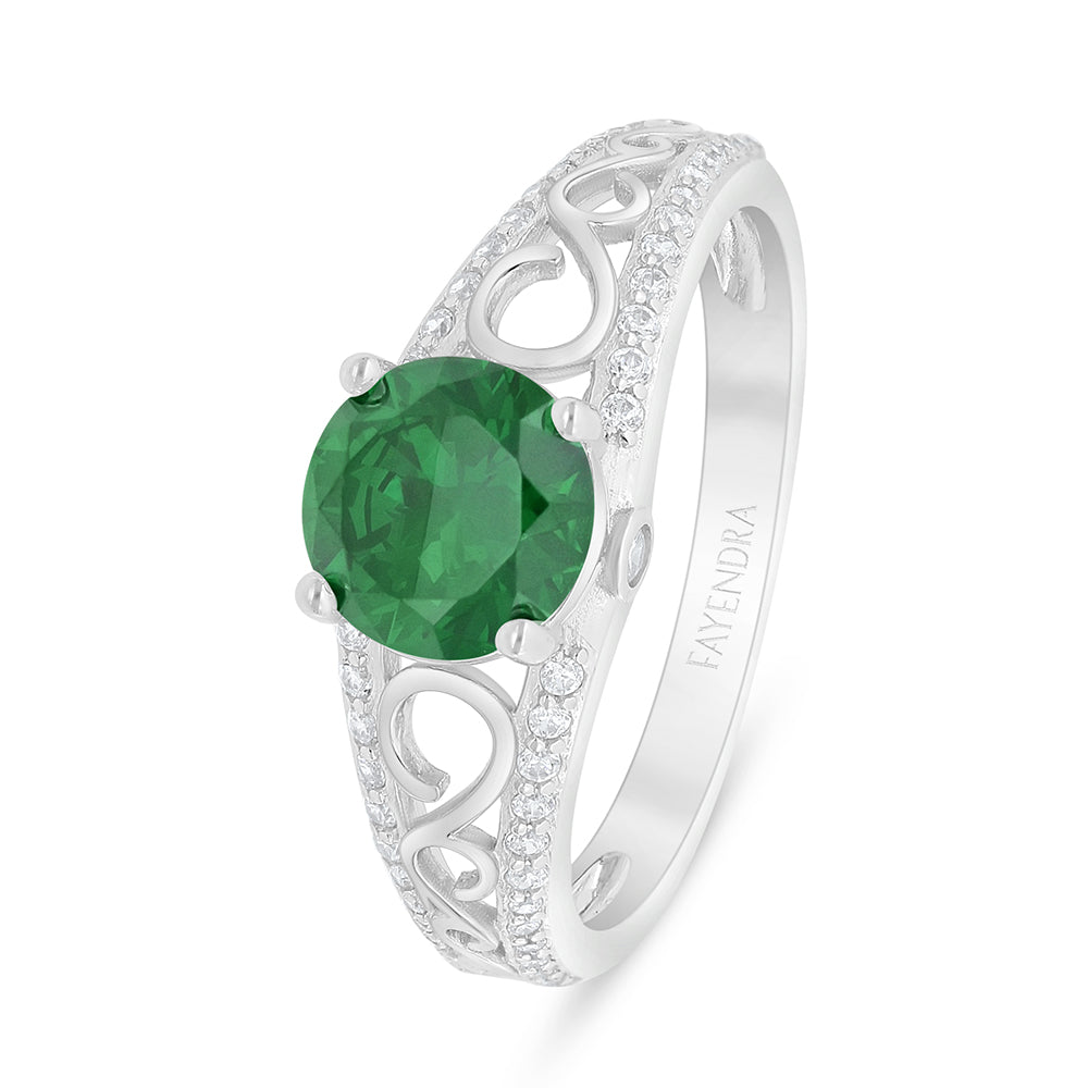 خاتم من الفضة الخالصة عيار 925 مطلي روديوم مرصع زركون زمردي و فص ابيض
