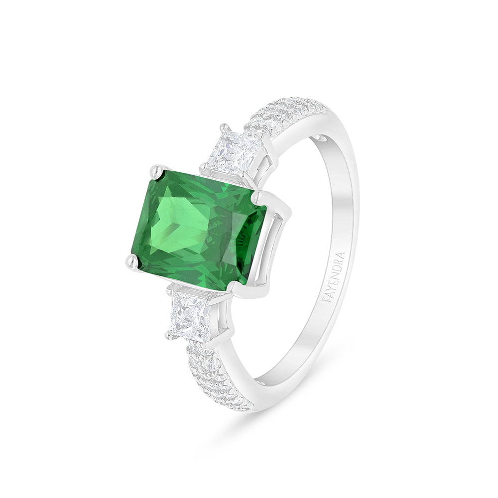 خاتم من الفضة الخالصة عيار 925 مطلي روديوم مرصع زركون زمردي و فص ابيض