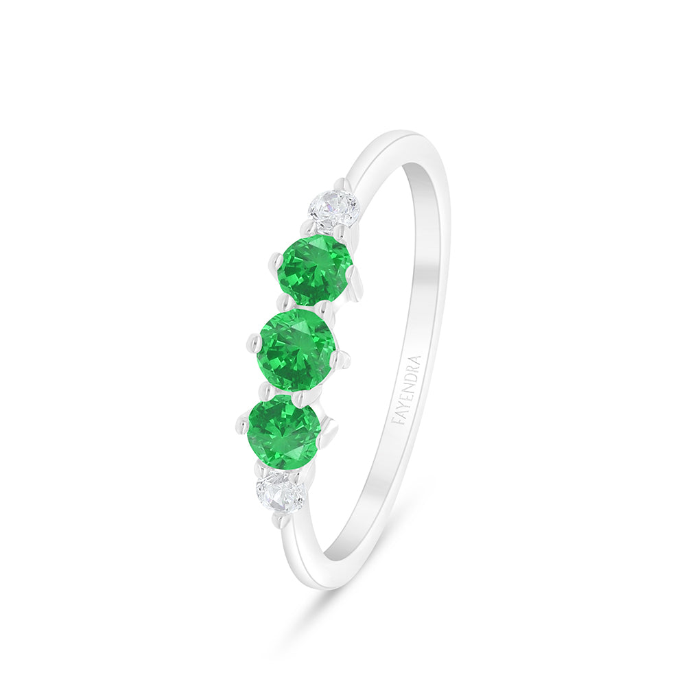 خاتم من الفضة الخالصة عيار 925 مطلي روديوم مرصع زركون زمردي و فص ابيض