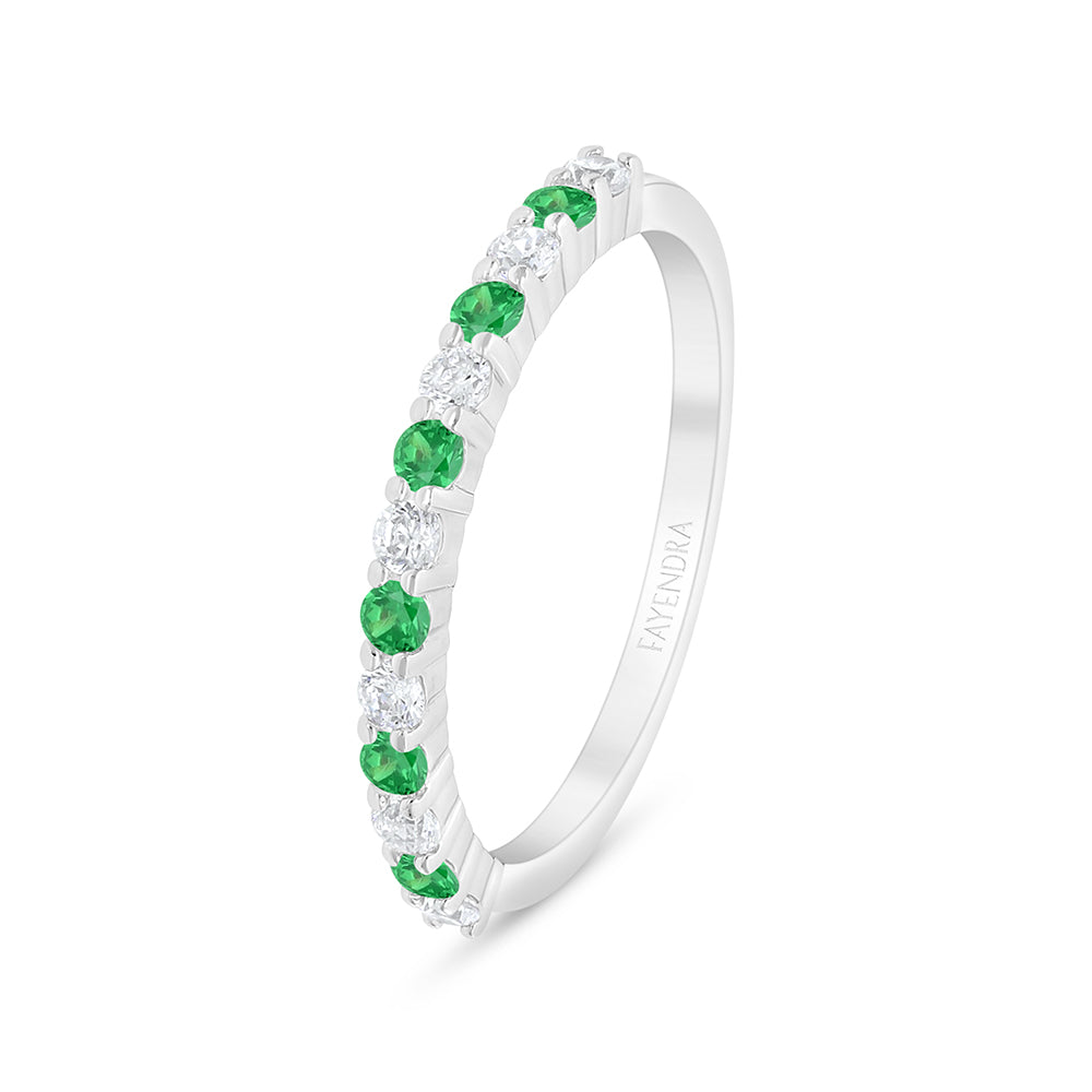 خاتم من الفضة الخالصة عيار 925 مطلي روديوم مرصع زركون زمردي و فص ابيض