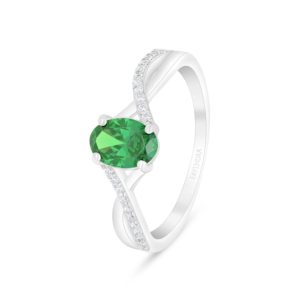خاتم من الفضة الخالصة عيار 925 مطلي روديوم مرصع زركون زمردي و فص ابيض