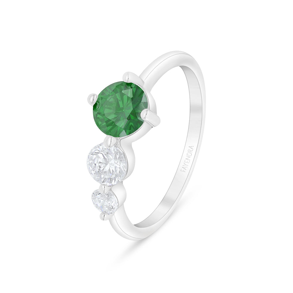 خاتم من الفضة الخالصة عيار 925 مطلي روديوم مرصع زركون زمردي و فص ابيض