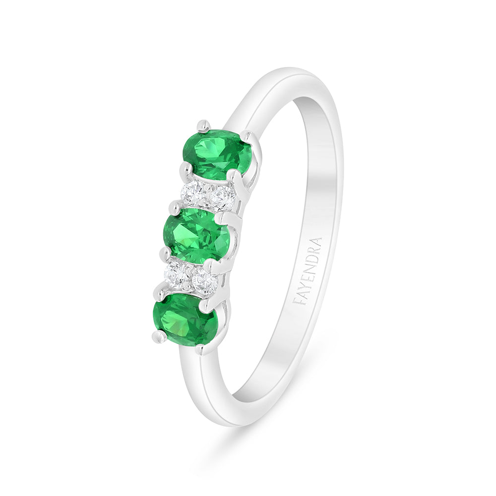 خاتم من الفضة الخالصة عيار 925 مطلي روديوم مرصع زركون زمردي و فص ابيض