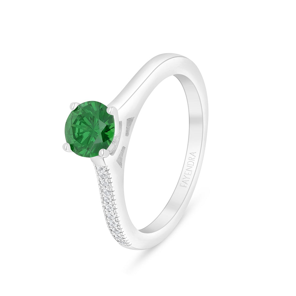 خاتم من الفضة الخالصة عيار 925 مطلي روديوم مرصع زركون زمردي و فص ابيض