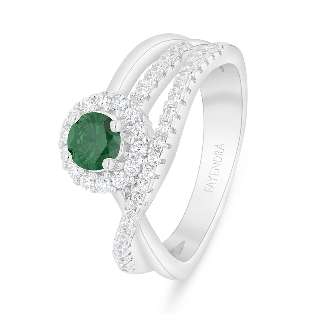 خاتم من الفضة الخالصة عيار 925 مطلي روديوم مرصع زركون زمردي و فص ابيض