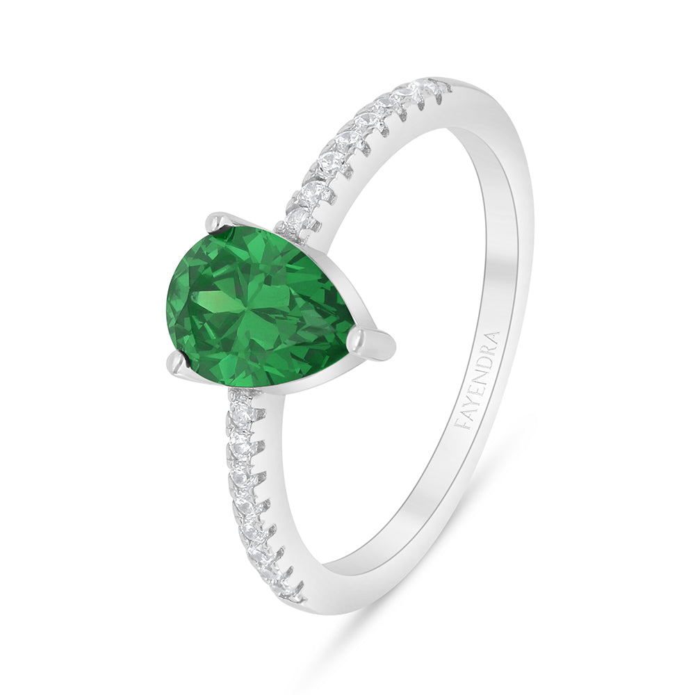 Total Weight: 2.2g اعكسي الخفة والبساطة مع خاتم فايندرا.مصنوع من الفضة الخالصة عيار 925 ومطلي بطبقة من الروديوم للحفاظ على لمعانه وبريقه. مرصّع بجوهرة مركزية من الزركون الأخضر بلون الزمرد، مقطوعة على شكل دمعة تثير الأحاسيس، وتشكل رمزًا للرزانة والرقي. تحيط بها نخبة من أحجار الزركون الأبيض التي تعكس الضوء مع كل حركة. أضيفيه إلى سلتك الآن!
