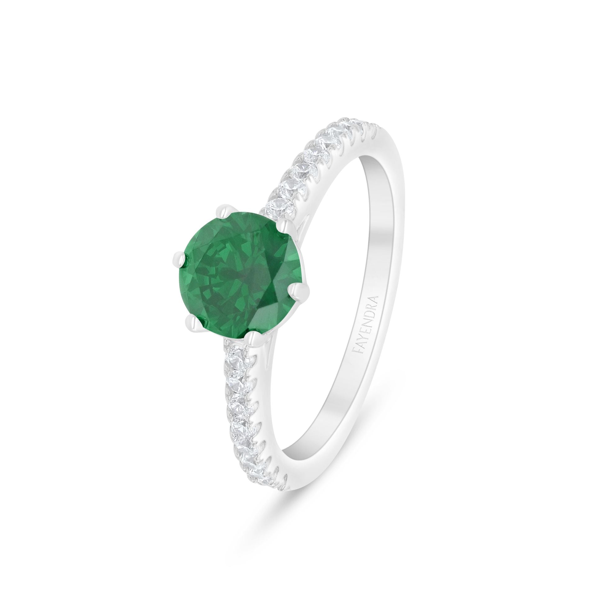 Total Weight: 2.8g خلّدي أهم لحظات عمرك مع خاتم سوليتير فايندرا الراقي، المصنوع من الفضة الخالصة عيار 925 والمطلي بالروديوم، والمرصّع بزركون زمردي بلون أخضر يعكس حبك للحياة، تحيط به نخبة من أحجار الزركون الأبيض المضيء كضوء القمر، ليعكس الضوء مع كل حركة من أناملك الساحرة.