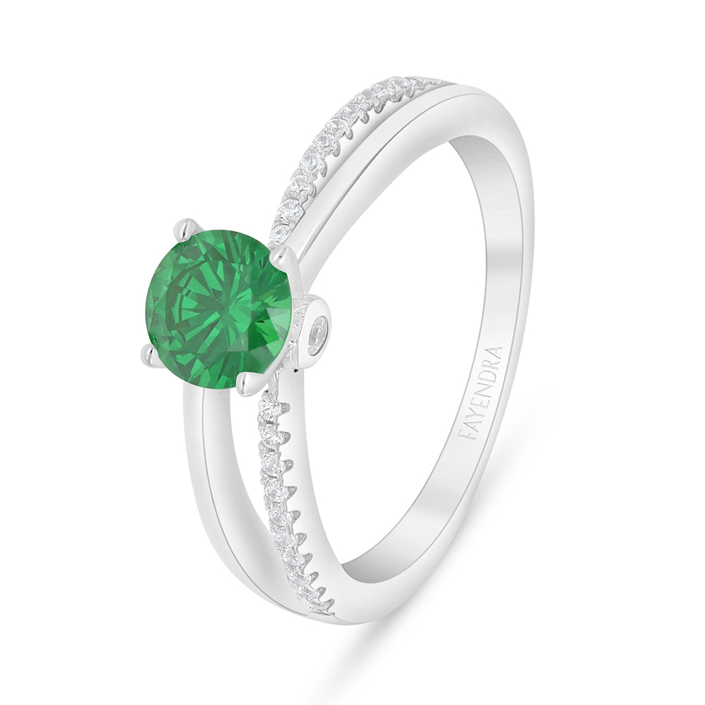 يأتي الخاتم مزينًا بجوهرة زركون زمردي بلون أخضر يعكس حبك للحياة، وتحيط بها مجموعة مختارة من أحجار الزركون الأبيض المتلألئة كضوء القمر والنجوم، في تصميم فني راقٍ.