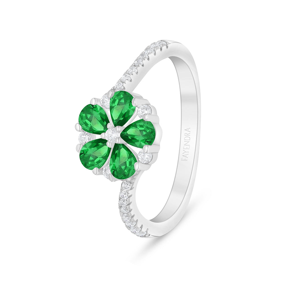خاتم من الفضة الخالصة عيار 925 مطلي روديوم مرصع زركون زمردي و فص ابيض