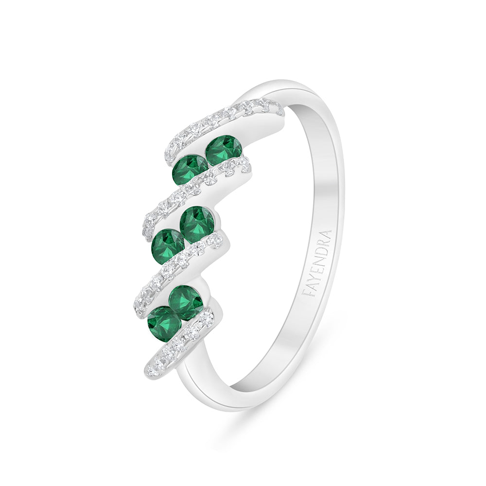 خاتم من الفضة الخالصة عيار 925 مطلي روديوم مرصع زركون زمردي و فص ابيض