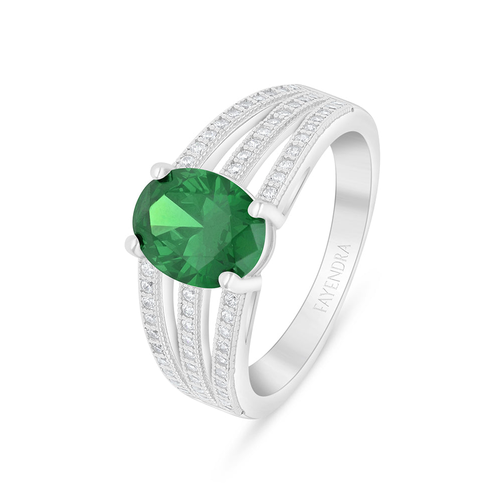 خاتم من الفضة الخالصة عيار 925 مطلي روديوم مرصع زركون زمردي و فص ابيض