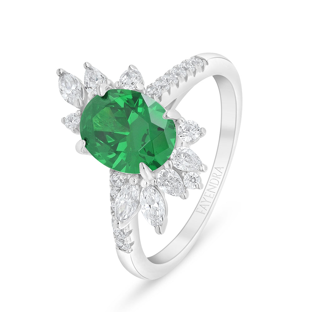 خاتم من الفضة الخالصة عيار 925 مطلي روديوم مرصع زركون زمردي و فص ابيض