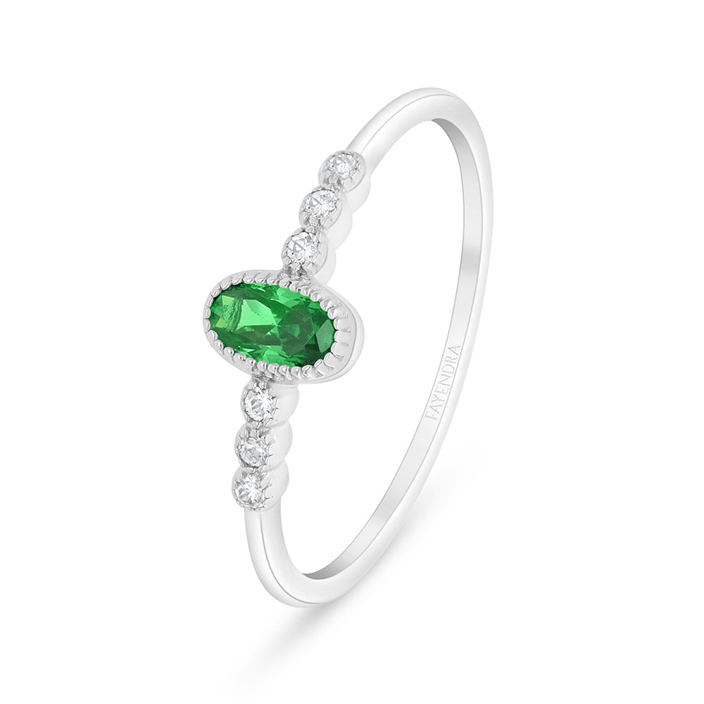 خاتم من الفضة الخالصة عيار 925 مطلي روديوم مرصع زركون زمردي و فص ابيض