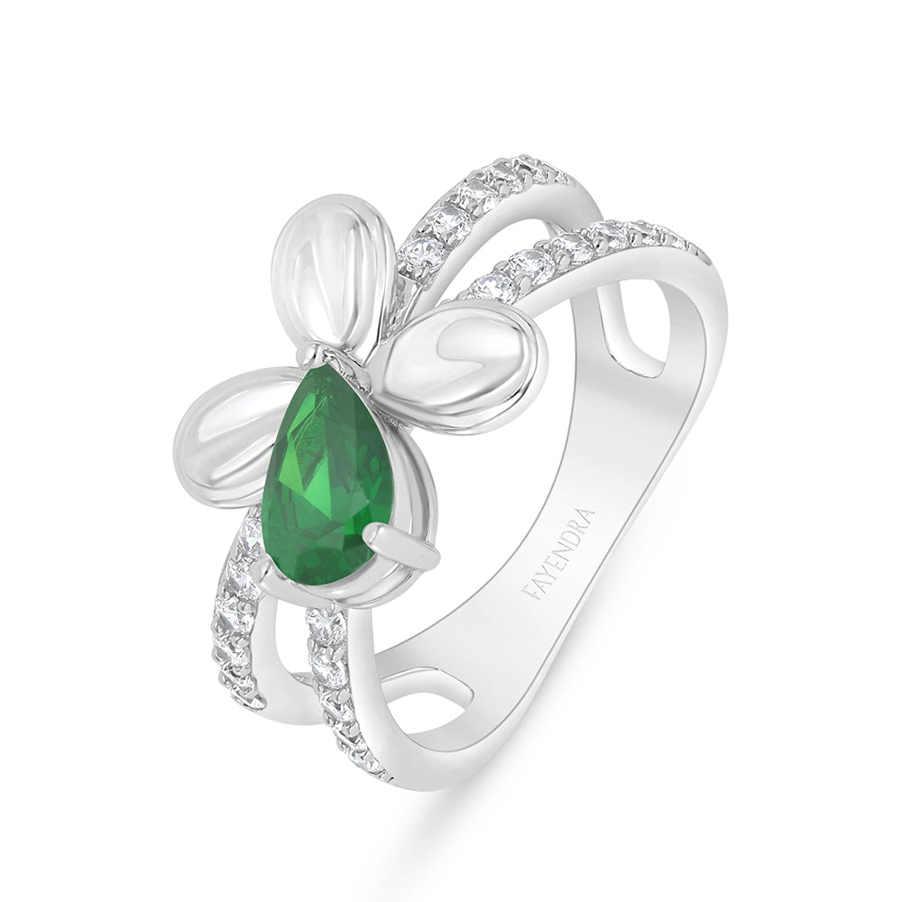 خاتم من الفضة الخالصة عيار 925 مطلي روديوم مرصع زركون زمردي و فص ابيض