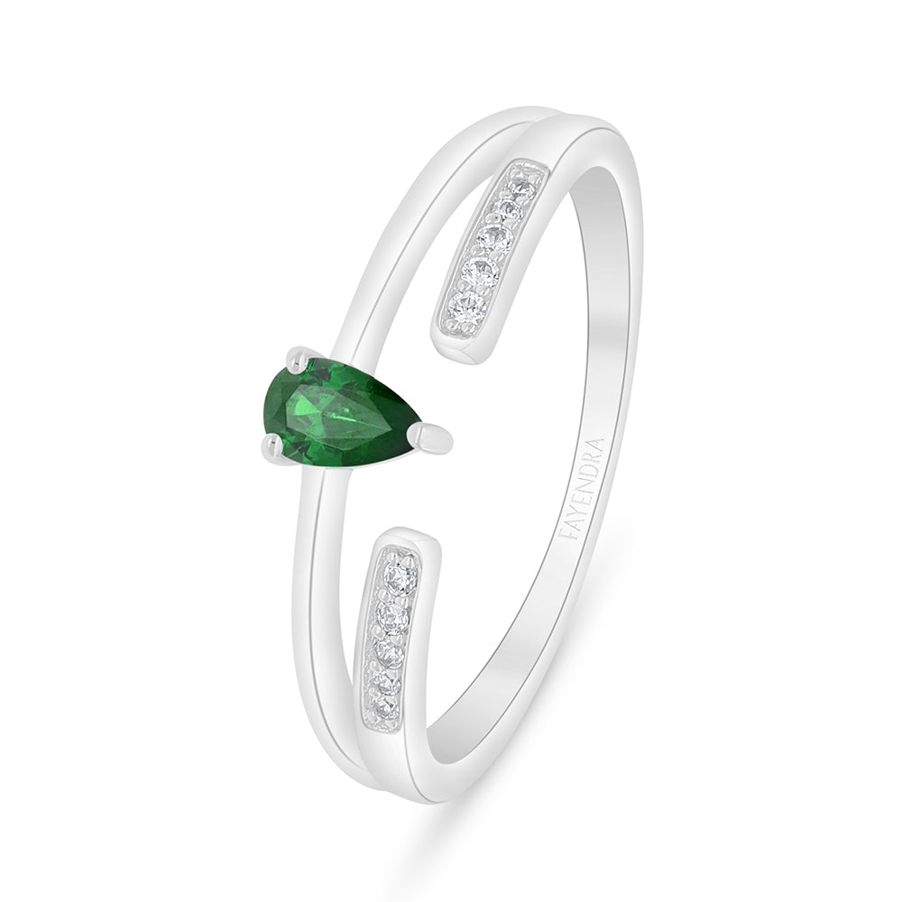 خاتم من الفضة الخالصة عيار 925 مطلي روديوم مرصع زركون زمردي و فص ابيض