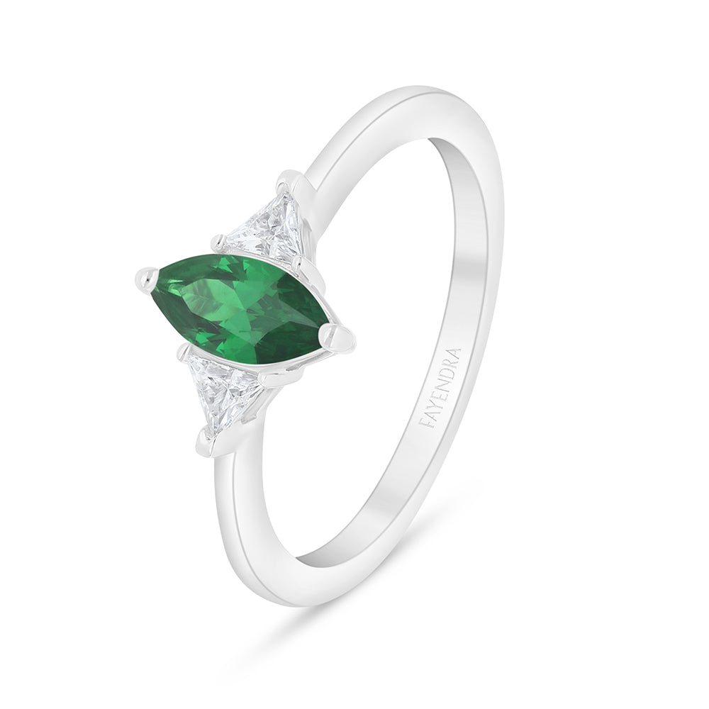 خاتم من الفضة الخالصة عيار 925 مطلي روديوم مرصع زركون زمردي و فص ابيض