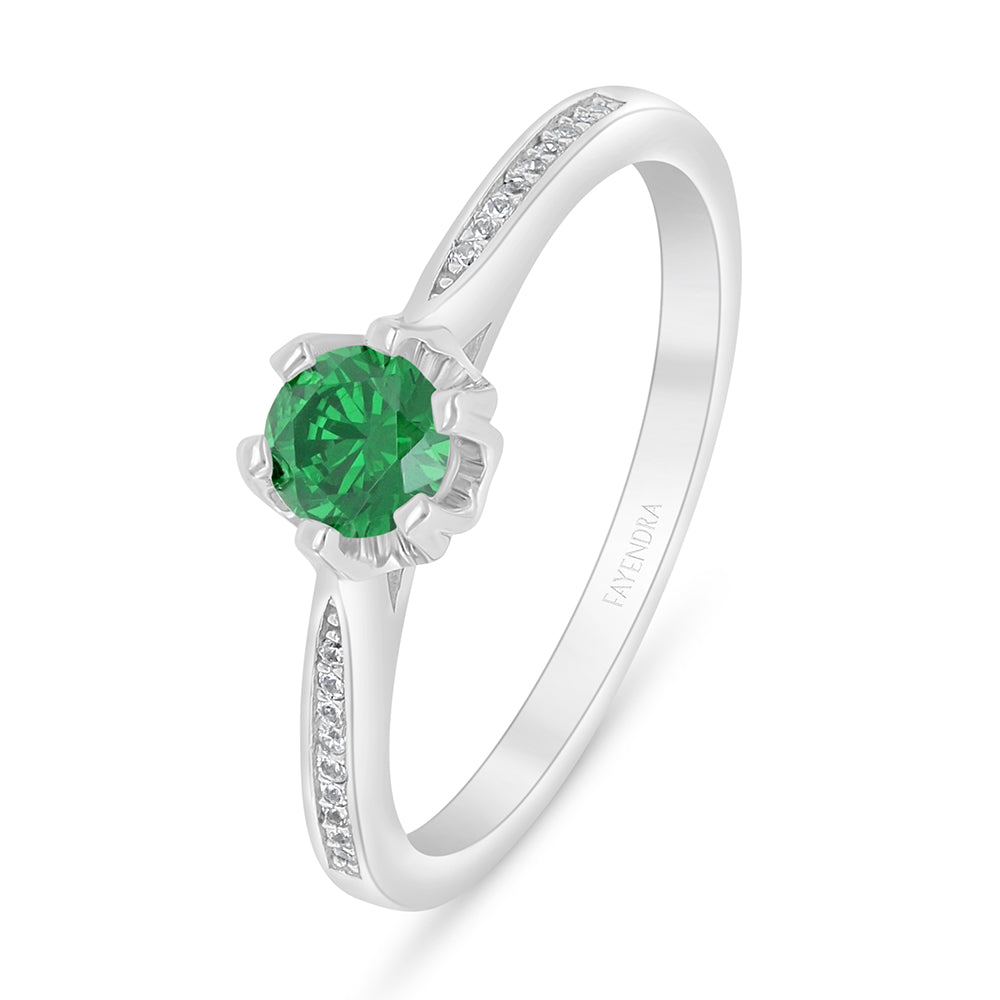 خاتم من الفضة الخالصة عيار 925 مطلي روديوم مرصع زركون زمردي و فص ابيض