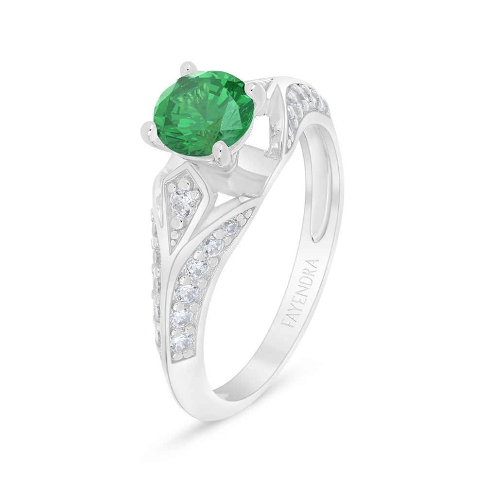 خاتم من الفضة الخالصة عيار 925 مطلي روديوم مرصع زركون زمردي و فص ابيض