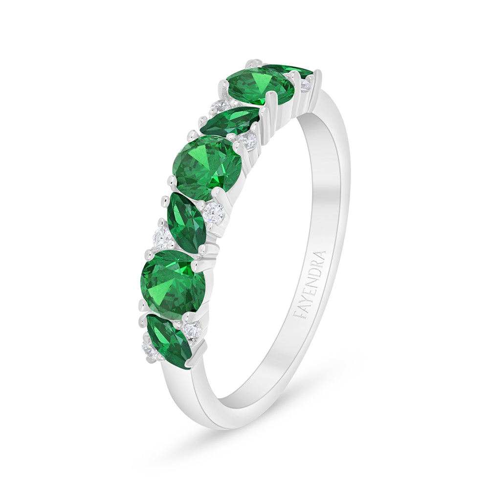خاتم من الفضة الخالصة عيار 925 مطلي روديوم مرصع زركون زمردي و فص ابيض