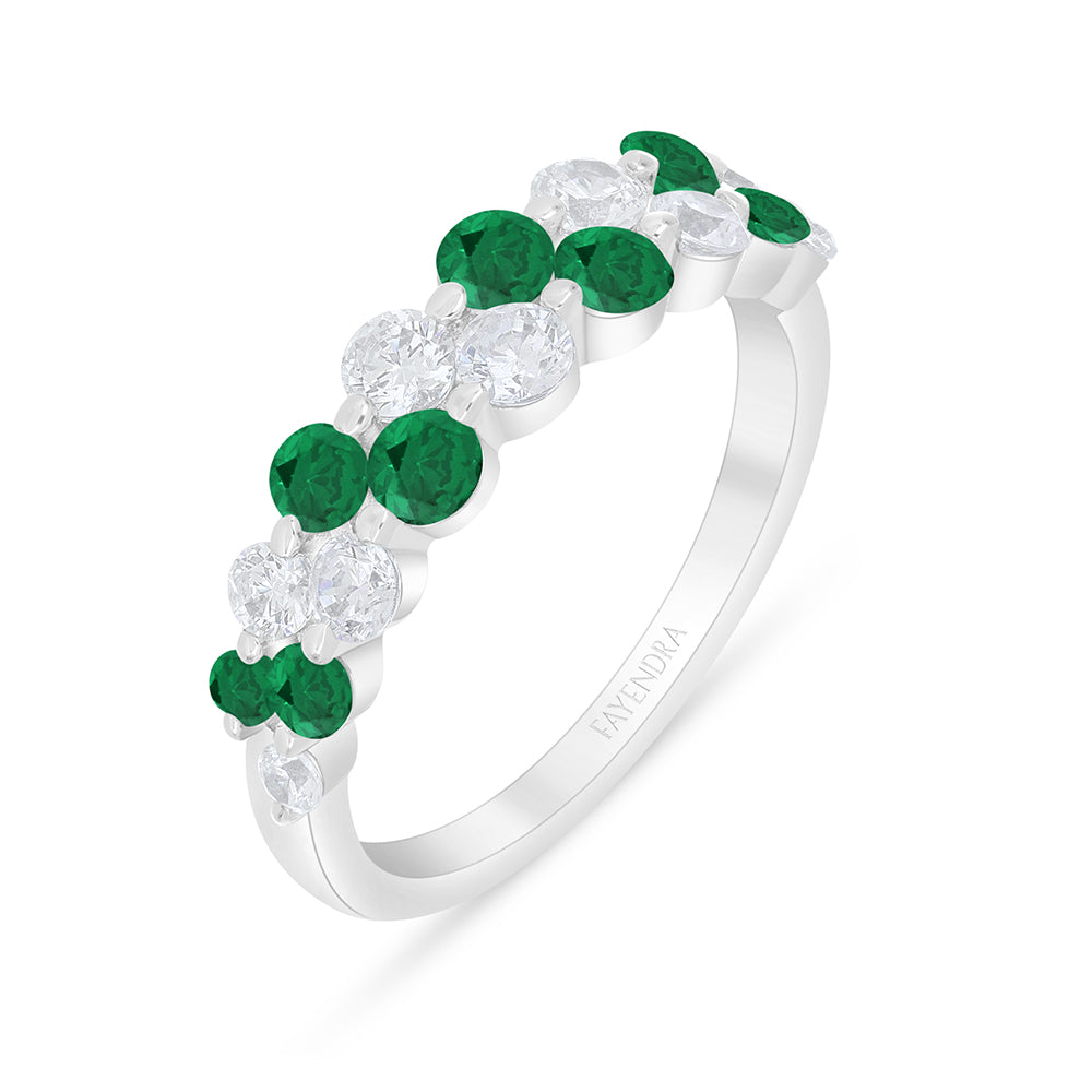 خاتم من الفضة الخالصة عيار 925 مطلي روديوم مرصع زركون زمردي و فص ابيض