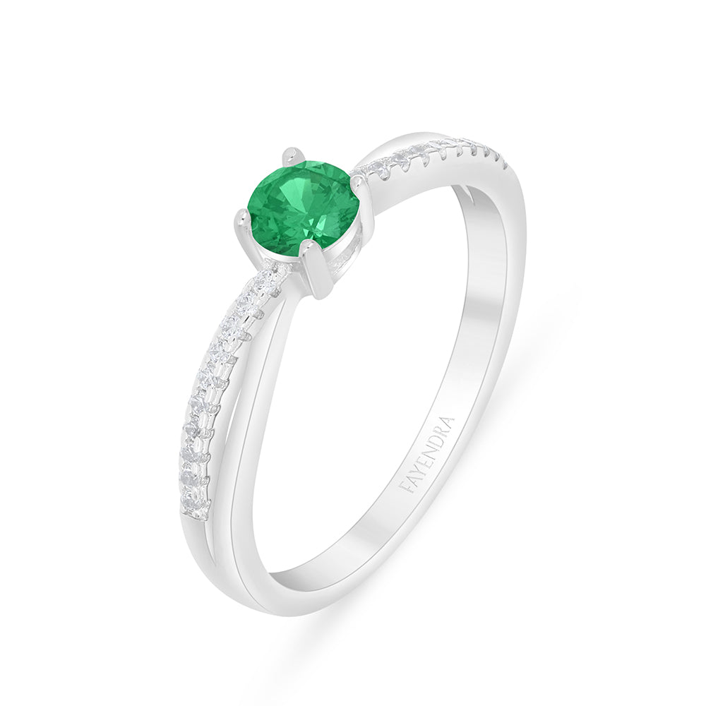 خاتم من الفضة الخالصة عيار 925 مطلي روديوم مرصع زركون زمردي و فص ابيض
