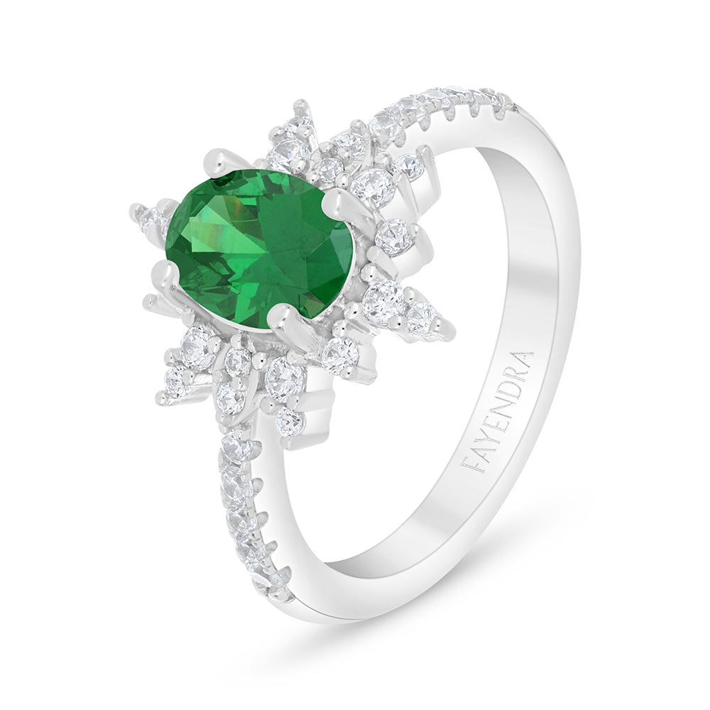 خاتم من الفضة الخالصة عيار 925 مطلي روديوم مرصع زركون زمردي و فص ابيض