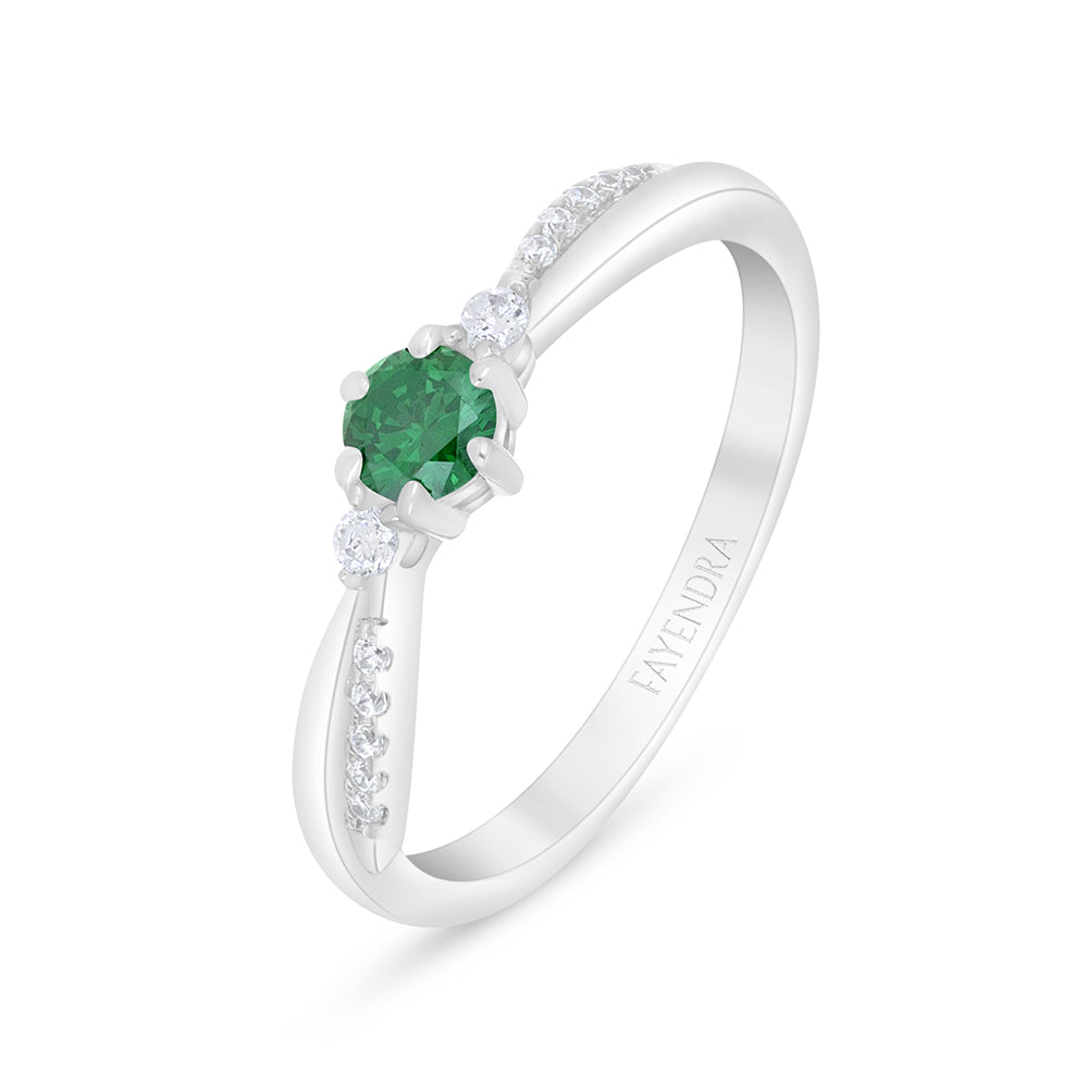 خاتم من الفضة الخالصة عيار 925 مطلي روديوم مرصع زركون زمردي و فص ابيض