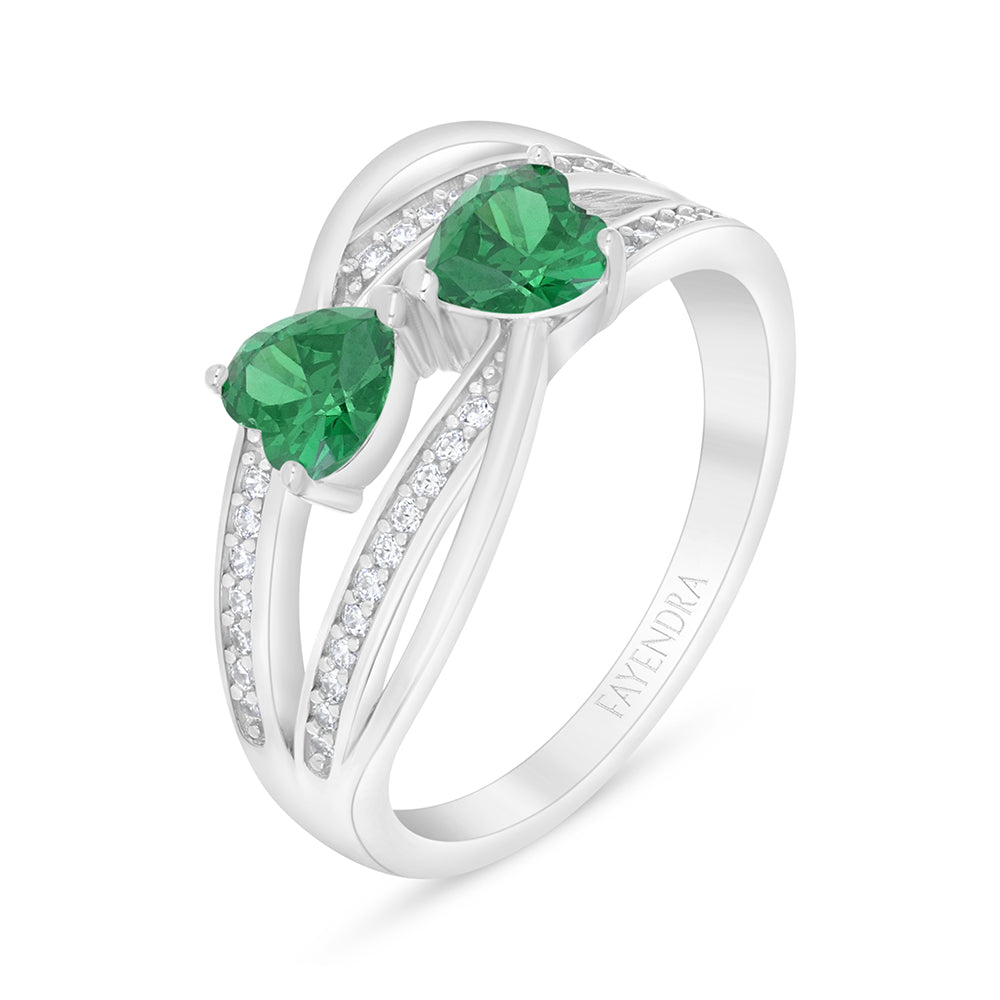 خاتم من الفضة الخالصة عيار 925 مطلي روديوم مرصع زركون زمردي و فص ابيض