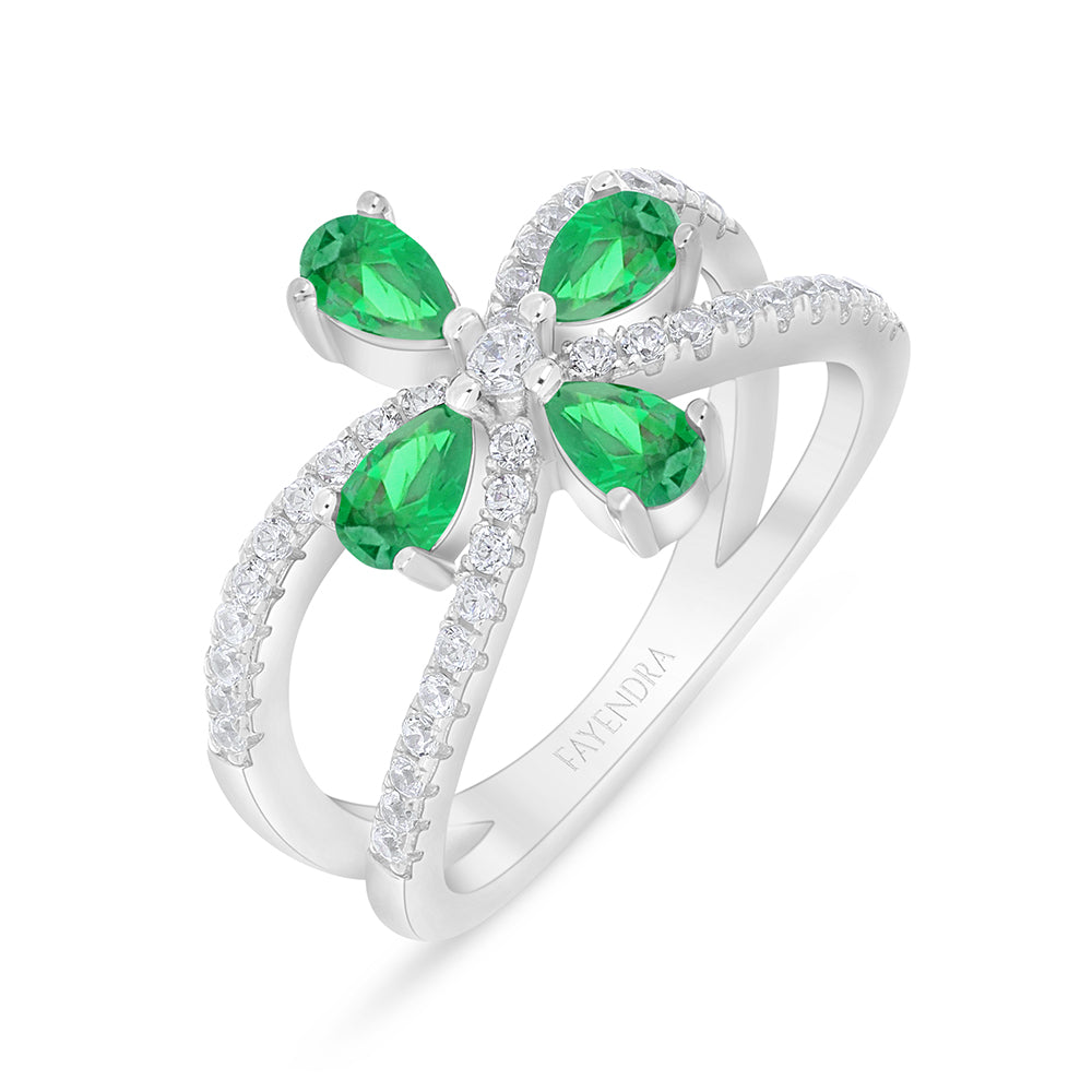 خاتم من الفضة الخالصة عيار 925 مطلي روديوم مرصع زركون زمردي و فص ابيض