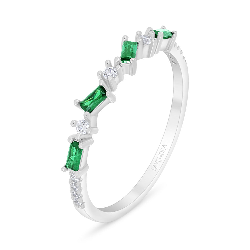 خاتم من الفضة الخالصة عيار 925 مطلي روديوم مرصع زركون زمردي و فص ابيض