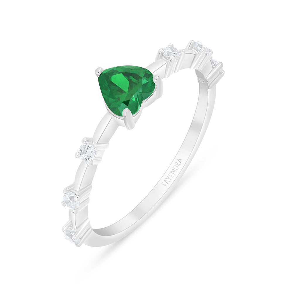خاتم من الفضة الخالصة عيار 925 مطلي روديوم مرصع زركون زمردي و فص ابيض