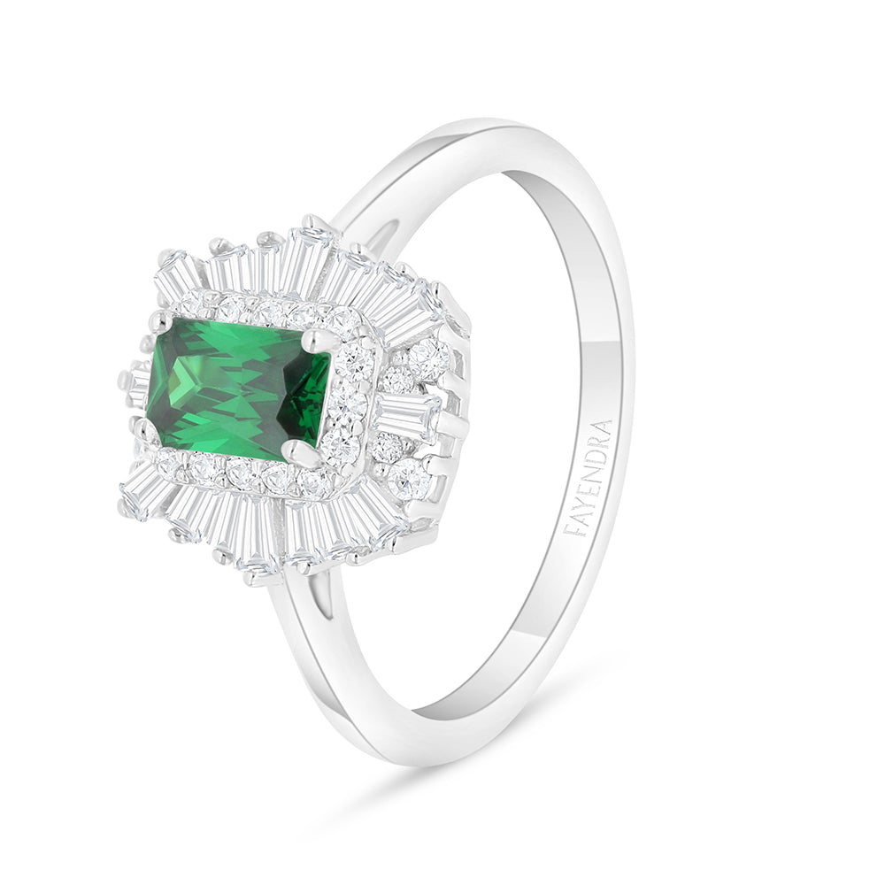 خاتم من الفضة الخالصة عيار 925 مطلي روديوم مرصع زركون زمردي و فص ابيض