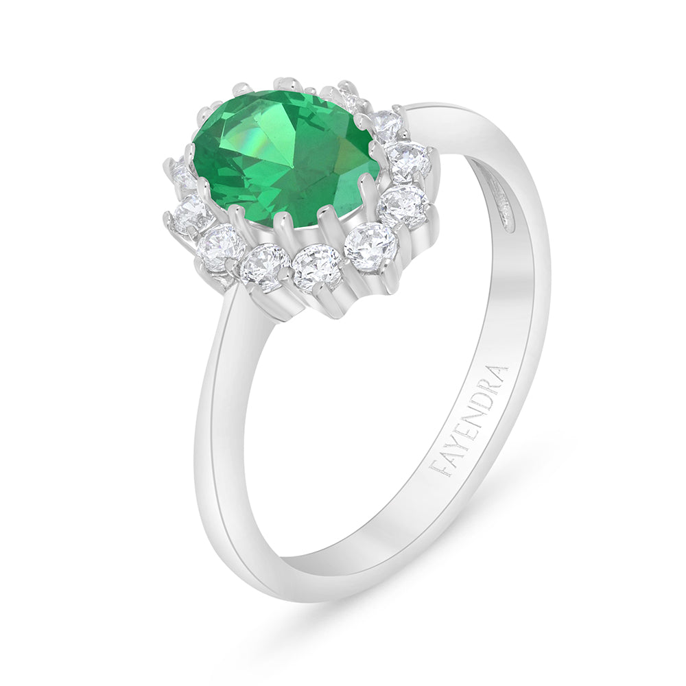 خاتم من الفضة الخالصة عيار 925 مطلي روديوم مرصع زركون زمردي و فص ابيض